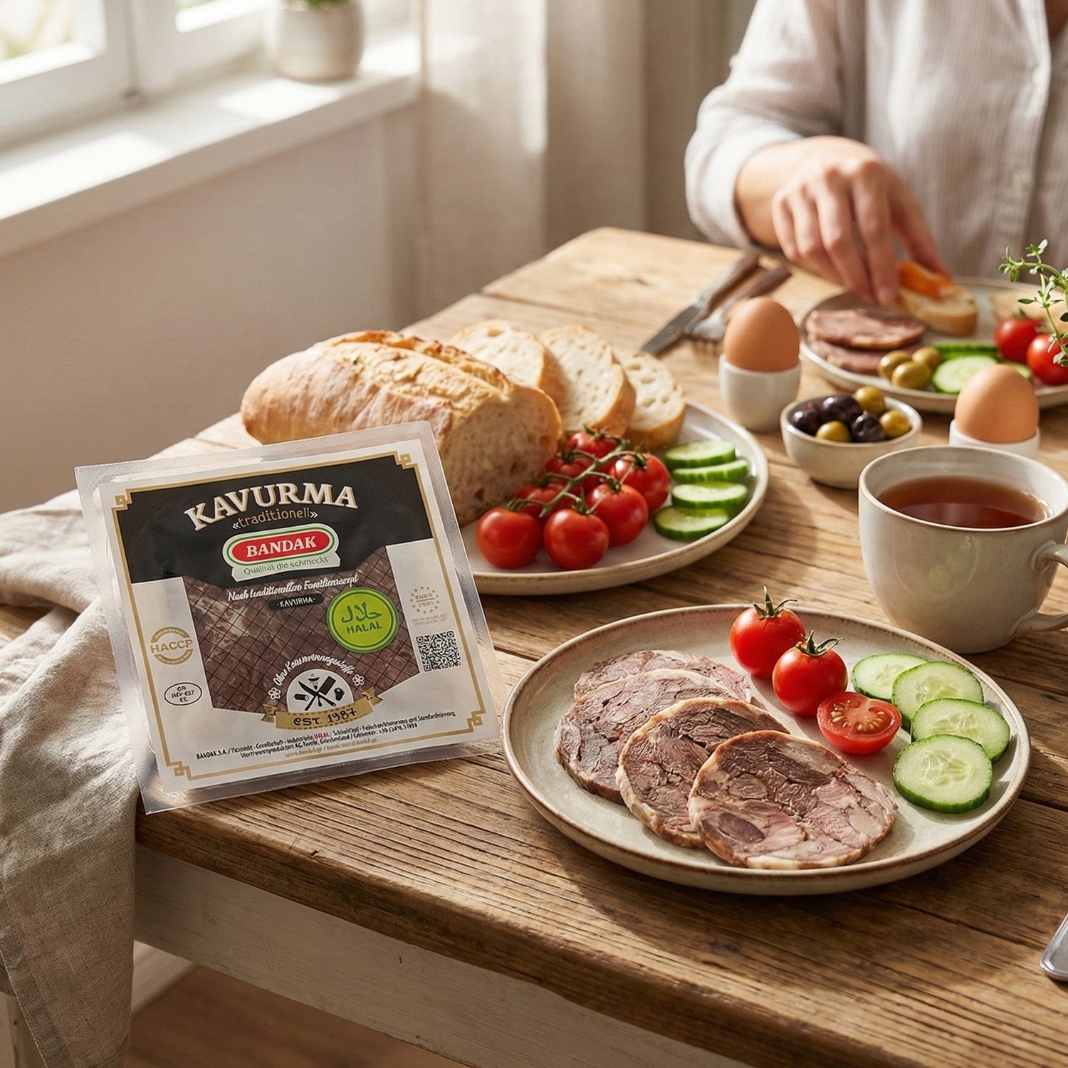 Geduld, die man schmeckt. Unser Kavurma ist kein gewöhnliches Fleischprodukt – es ist das Ergebnis von über 35 Jahren familiärer Handwerkstradition aus Xanthi. Hergestellt in unserem eigenen, modernsten industriellen Halal-Schlachthof, garantieren wir höchste Reinheit und Qualität bei jedem Bissen.